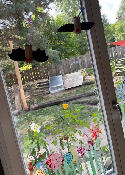 Das Interesse an den nachtaktiven Tieren war geweckt – und so wurde gelesen, gebastelt, gereimt und geforscht, was das Zeug hält. Die Kinder lernten viel über das Leben der Fledermäuse und hatten großen Spaß daran, ihre Entdeckungen miteinander zu teilen. Besonders beliebt war unsere kleine Stoff-Fledermaus „Fritzi“, die jeden Morgen beim Kreis dabei war und vor allem die jüngeren Kinder zum Schmunzeln brachte.