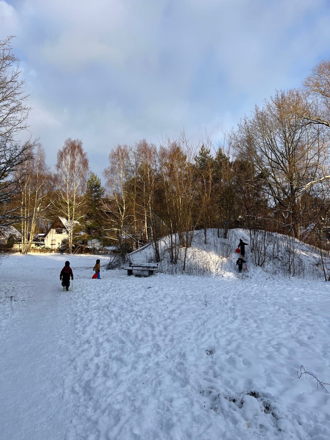 Mit kleinen Schlitten unterwegs, beim Rutschen und Entdecken, sammeln die Kinder intensive Naturerfahrungen – sie spüren die Kälte, hören das Knirschen des Schnees unter den Füßen und erleben, wie sich ihre vertraute Umgebung im Winter verändert.