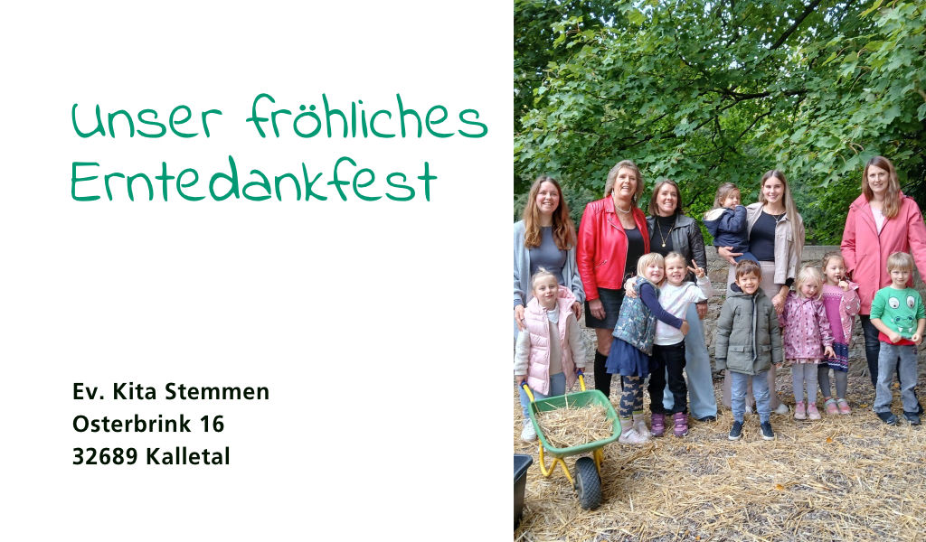 Für unsere Kita Stemmen war dieser das Erntedankfest ein voller Erfolg. Denn die Kinder standen im Mittelpunkt standen und sie konnten spüren, dass sie ein wertvoller Teil der Gemeinde sind. Es war ein fröhlicher, lebendiger Gottesdienst, bei dem die Kinder mit Stolz zeigen konnten, was in ihnen steckt. Ein Tag der allen Beteiligten sicher noch lange in Erinnerung bleiben wird.