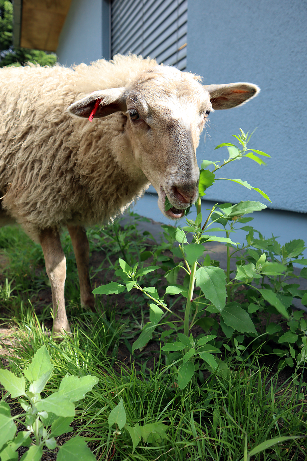Am Dienstagmorgen fuhr dann ein ganz besonderes Auto mit Anhänger vor. Schäfer Thomas stand mit Hütehund „Hexe“ und vier kleinen Schafen vor dem Tor. Und die Schafe hatten großen Hunger mitgebracht. Bei uns wurden sie dann mit „Zuckerrüben-Schnee“, frischem grünem Gras und vielen streichelnden Händen verwöhnt.