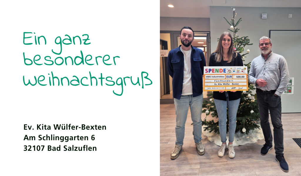 Die HMS Industriebau GmbH aus Bad Salzuflen spendete uns einen wunderschönen Weihnachtsbaum und überreichte uns zusätzlich einen Spendenscheck in Höhe von 500 Euro.